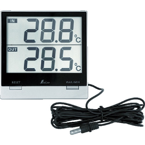 | 商品仕様 | ●その他仕様/●測定温度範囲(℃):-5~50(IN)-50~70(OUT) ●温度最小表示(℃):0.1 ●電源:単4アルカリ乾電池×1本(付属) ●測定精度:±1℃(0~40℃)、±2℃(それ以外)。 ●測定精度:±1℃(0~40℃)、±2℃(それ以外)。 ●幅×奥行×高さ:102×18×103mm ●防水仕様外部センサーコード長:3m ●測定間隔 10秒 ●防水構造:温度センサー部IPX7 ●室内外の温度管理に使用する温度計。 ●本体:ABS樹脂 ●外部センサー:ステンレス、塩化ビニル樹脂 |