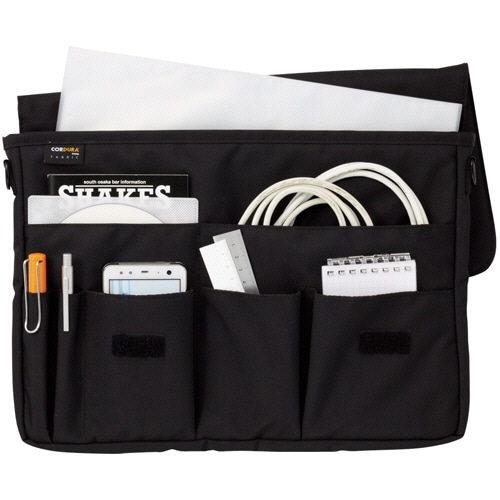 ペンやスマートフォンなど様々なワーキングツールを整理して持ち運ぶ事ができるキャリングポーチ。