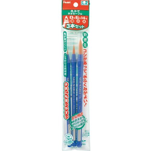 ぺんてる えふで ネオセーブル 丸筆(0・6・14号)3本セット XZBNR-3S 1セット
