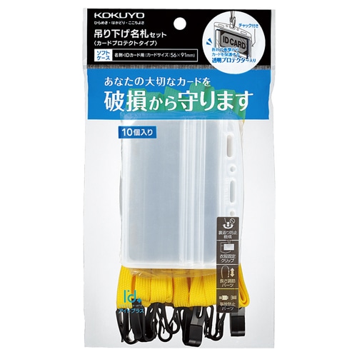 コクヨ 吊り下げ名札セット(カードプロテクトタイプ・チャック式)(アイドプラス) 黄 ナフ-SP180-10Y 1パック(10個)