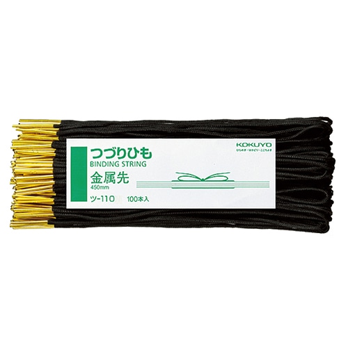 コクヨ つづりひも 450mm 黒 金属先 スフ糸16本織+PP細糸8本織 ツ-110 1パック(100本)