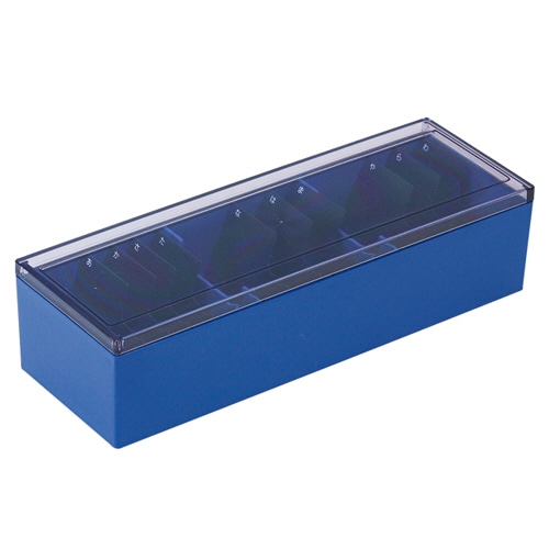 | 商品仕様 | ●収容枚数/約1000枚 ●色/青 ●寸法/W100×D290×H64mm ●材質/本体:再生PS製(フタ部分除く) ●重量/390g ●付属品/PS製フタ付 PP製インデックスシート10枚、紙製補助インデックス20枚、インデックスラベル1枚 ●備考/フタをしたときの寸法は タテ:100 ヨコ:290 高さ:73(mm) |