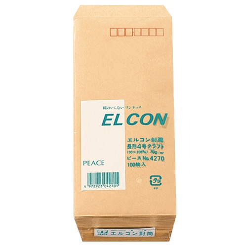 高春堂 ピース R40再生紙クラフト封筒 テープのり付 長4 70g/m2 〒枠あり 4270 1パック(100枚)