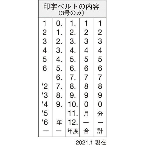 商品仕様 | ●種類/欧文日付 ●サイズ/3号 ●書体/ゴシック体 ●寸法/W38.3×D28.5×H97.6mm ●材質/再生PP、再生ABS、アルミニウム、EPDM ●重量/約47g ●その他仕様/●参考印面寸法:ヨコ26.5×タテ4.5mm ●備考/※メーカー都合により、印字面の開始年号の切替は順次行います。開始年月を選ぶ事はできませんのでご了承ください。 |