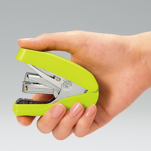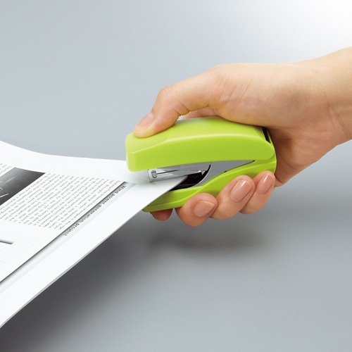 ●軽とじ機構搭載のフラットクリンチステープラー。カラーは青です。