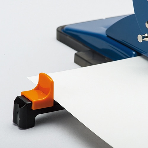 ●用紙当てが大きく、ガイドと台座の高さが同じなので用紙1枚だけでもしっかりセンター合わせができます。