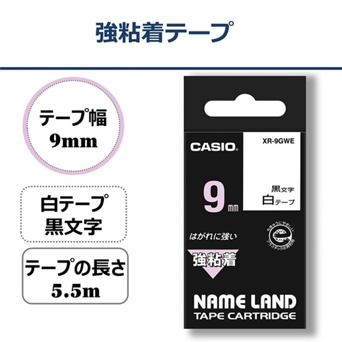 カシオ NAME LAND 強粘着テープ 9mm×5.5m 白/黒文字 XR-9GWE 1個