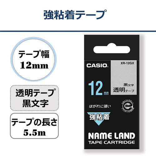 カシオ NAME LAND 強粘着テープ 12mm×5.5m 透明/黒文字 XR-12GX 1個