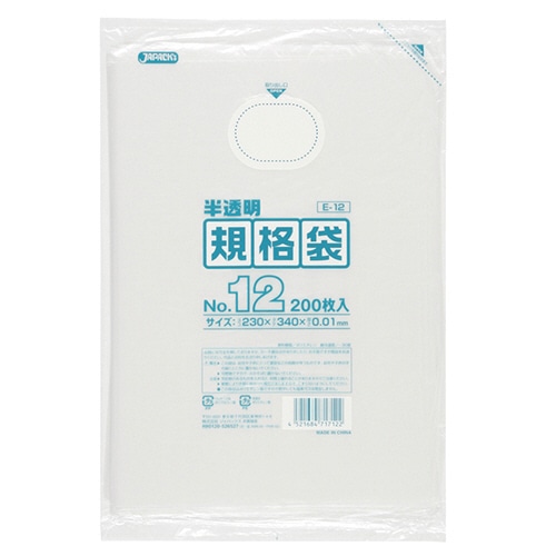 ジャパックス HD規格袋 半透明 12号 230×340×厚み0.01mm E-12 1パック(200枚)