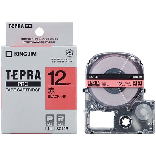 キングジム テプラ PRO テープカートリッジ パステル 12mm 赤/黒文字 SC12R 1個