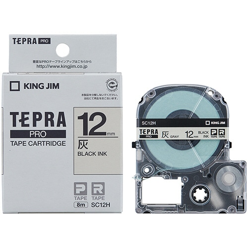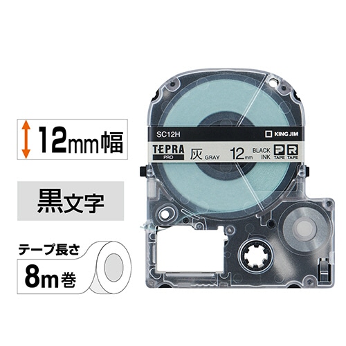 キングジム テプラ PRO テープカートリッジ パステル 12mm 灰色/黒文字 SC12H 1個