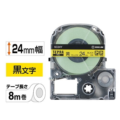 キングジム テプラ PRO テープカートリッジ パステル 24mm 黄/黒文字 SC24Y 1個