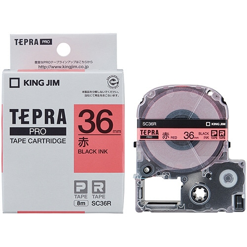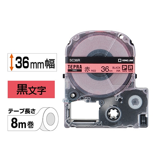 キングジム テプラ PRO テープカートリッジ パステル 36mm 赤/黒文字 SC36R 1個