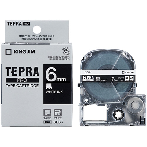キングジム テプラ PRO テープカートリッジ ビビッド 6mm 黒/白文字 SD6K 1個