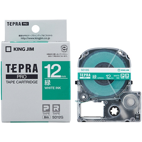 キングジム テプラ PRO テープカートリッジ ビビッド 12mm 緑/白文字 SD12G 1個