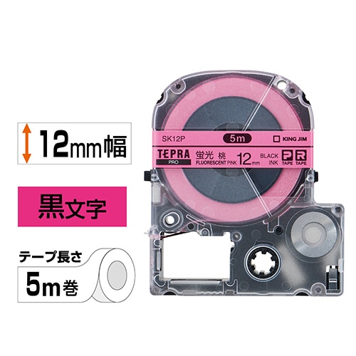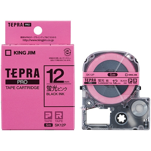 キングジム テプラ PRO テープカートリッジ 12mm 蛍光ピンク/黒文字 SK12P 1個