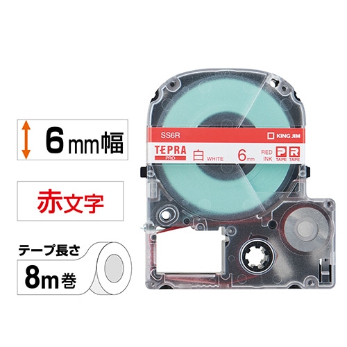 キングジム テプラ PRO テープカートリッジ 6mm 白/赤文字 SS6R 1個