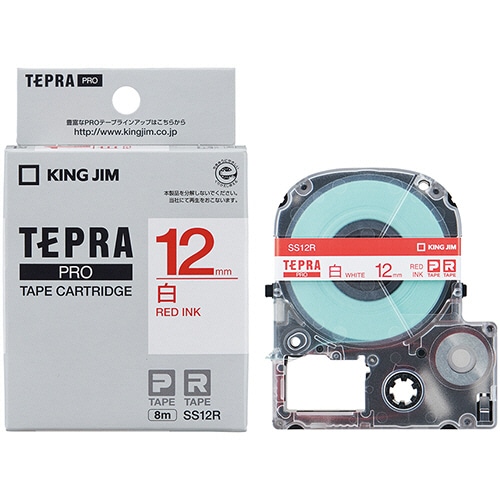 キングジム テプラ PRO テープカートリッジ 12mm 白/赤文字 SS12R 1個