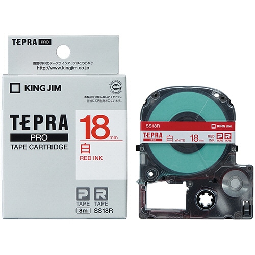 キングジム テプラ PRO テープカートリッジ 18mm 白/赤文字 SS18R 1個