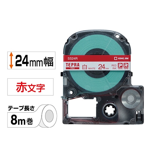キングジム テプラ PRO テープカートリッジ 24mm 白/赤文字 SS24R 1個