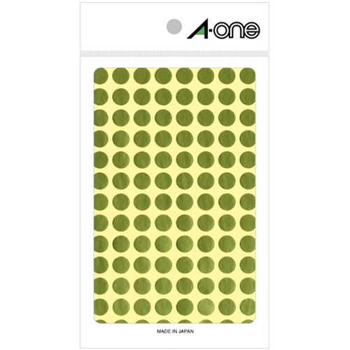 | 商品仕様 | ●色/金 ●ラベル直径/9mm ●ラベルの厚さ/0.08mm ●材質/アルミ箔紙 ●その他仕様/●シートサイズ:90×150mm ●面付:104面(8列×13段) ●合計片数:832片 |