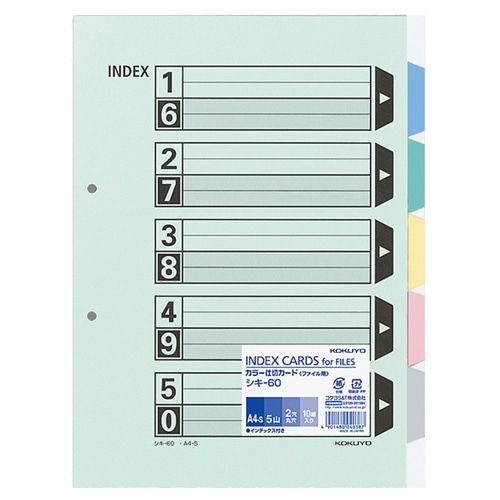 コクヨ カラー仕切カード(ファイル用・5山見出し) A4タテ 2穴 5色+扉紙 シキ-60 1パック(10組)