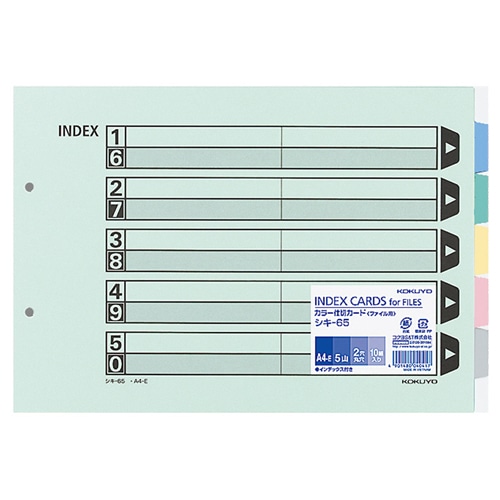 コクヨ カラー仕切カード(ファイル用・5山見出し) A4ヨコ 2穴 5色+扉紙 シキ-65 1パック(10組)