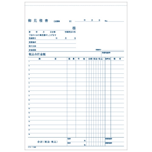 コクヨ NC複写簿(ノーカーボン)見積書 B5タテ型 2枚複写 18行 40組 ウ-306 1冊