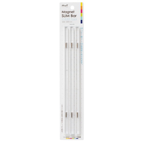 | 商品仕様 | ●種類/マグネットバー ●寸法/W220×D7×H6mm ●色/クリア ●保持枚数/A4コピー用紙約7~10枚 ●材質/PS |