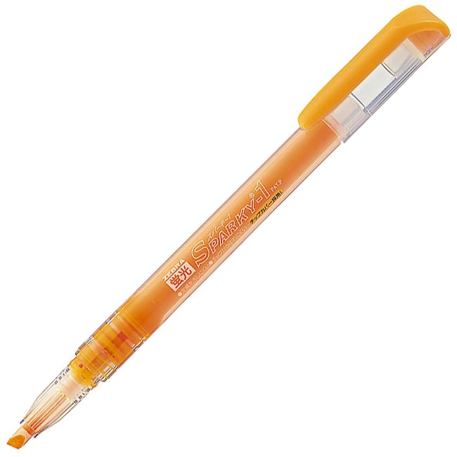 | 商品仕様 | ●インク種類/水性顔料 ●インク色/黄橙 ●芯の太さ/太字 ●芯形状/角芯 ●線幅/3.5mm ●全長/138.5mm ●軸径/11mm ●重量/11.3g ●シリーズ名/スパーキー ●インクカラー/オレンジ(系) |