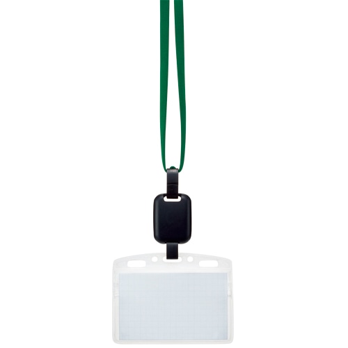 吊り下げ名札セット(リール式・ソフトケース・チャック式) 緑 1パック(10個)