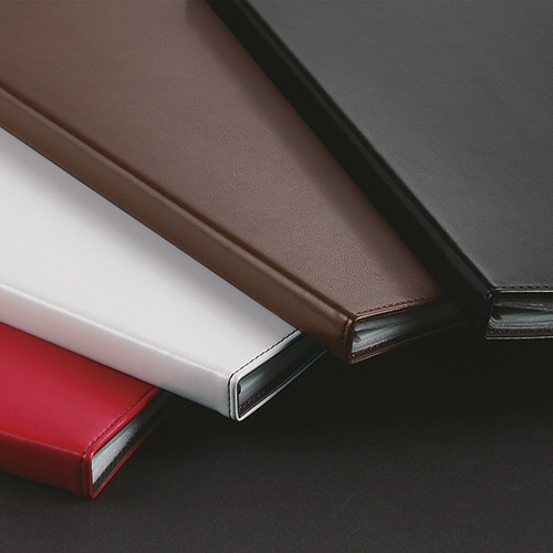 【固定式】大切な書類の収納におすすめ。高級感漂う合皮表紙クリアファイル。