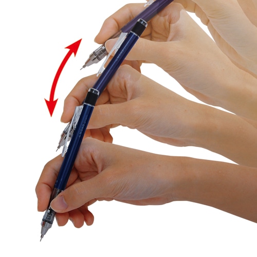 モノ消しゴム搭載。軸を上下に振るだけで芯が出るフレノック機構。