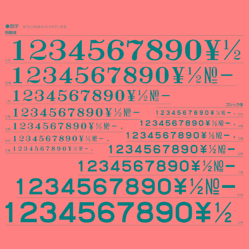 ●柄付ゴム印連結式、5号・ゴシック体の数字セットです。