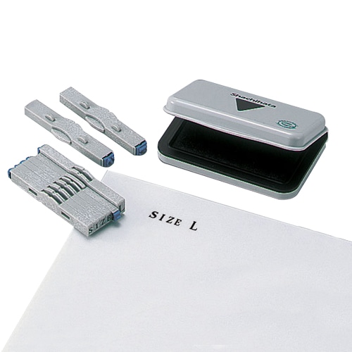 商品仕様 | ●印面内容/「A~Z」「&」「-」「.」「カンマ(記号)」「※」 ●サイズ/3号 ●書体/ゴシック体 ●印面サイズ/4.7×3.8mm ●寸法/W114.8×D71.2×H71mm ●材質/PS ●重量/約235g ●その他仕様/●連結式 ●印面セット内容:「A~Z」「&」「-」「.」「カンマ(記号)」「※」、「A、I、U、E、O」のみ各2本入ってます |