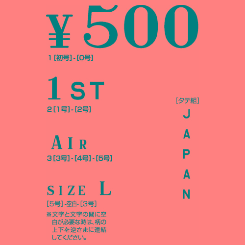 ●サイズ違いの連結もできるから、なつ印場所や用途に合わせた印面スタイルがつくれます。
