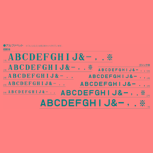 商品仕様 | ●印面内容/「A~Z」「&」「-」「.」「カンマ(記号)」「※」 ●サイズ/4号 ●書体/ゴシック体 ●印面サイズ/4.0×3.2mm ●寸法/W114.8×D71.2×H71mm ●材質/PS ●重量/約215g ●その他仕様/●連結式 ●印面セット内容:「A~Z」「&」「-」「.」「カンマ(記号)」「※」、「A、I、U、E、O」のみ各2本入ってます |