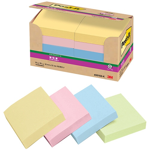 3M ポスト・イット エコノパック 強粘着ノート 50×50mm 4色 6501SS-K 1パック(10冊)