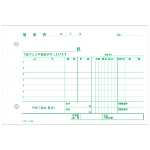 コクヨ NC複写簿(ノーカーボン)3枚納品書(請求付き) B6ヨコ型 7行 50組 ウ-333 1冊