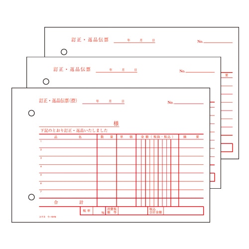 コクヨ BC複写簿(バックカーボン)訂正返品伝票 B6ヨコ型 3枚複写 50組 ウ-191N 1冊