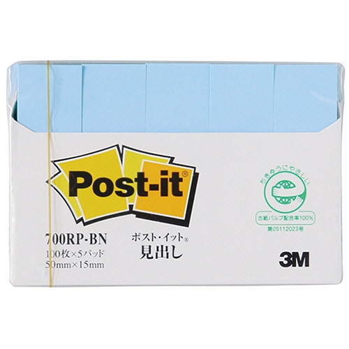 3M ポスト・イット 見出し 再生紙 50×15mm ブルー 700RP-BN 1パック(5冊)