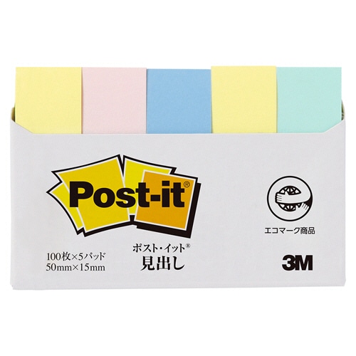3M ポスト・イット 見出し 再生紙 50×15mm 4色混色 700RP-K 1パック(5冊)