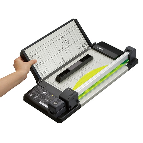 商品仕様 | ●対応用紙サイズ/A4 ●裁断幅/310mm ●裁断枚数/丸刃:50枚、ミシン目刃:3枚 ●寸法/W365×D517×H82mm ●対応替マット/DCM-310 ●対応替刃/DCC-28(丸刃)、DCC-29(ミシン目刃)、K-18(フッ素コート刃) ●材質/ABS、SPCC等 ●重量/2.6kg ●付属品/替刃用空ケース×1個 ●その他仕様/●折り畳み時サイズ:W221×D517×H82mm ●備考/※購入時はフッ素コート刃とカッターマットが本体に装着済みです。 ※紙あて定規付。 |