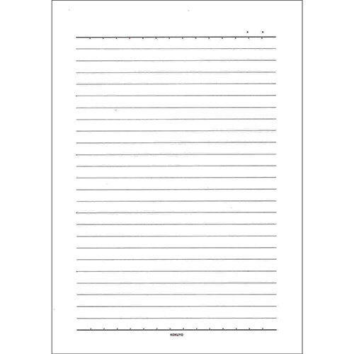 | 商品仕様 | ●サイズ/セミB5 ●寸法/タテ250×ヨコ177mm ●罫/横罫 ●罫幅/8.3mm ●枚数/50枚 ●行数/25行 ●罫色/グレー ●材質/上質紙(古紙パルプ配合) ●重量/140g |