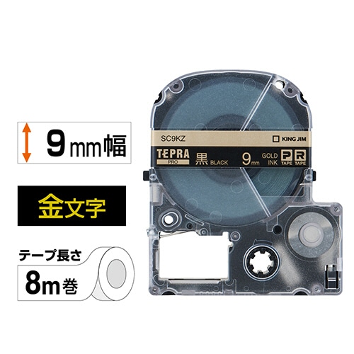 キングジム テプラ PRO テープカートリッジ パステル 9mm 黒/金文字 SC9KZ 1個