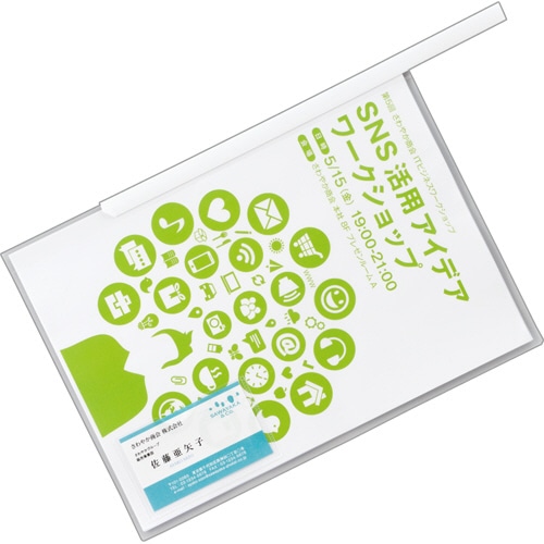 | 商品仕様 | ●サイズ/A4タテ ●色/表紙色:透明、レール:ホワイト ●寸法/タテ307×ヨコ220mm ●レール幅/6mm ●表紙厚/0.2mm ●収容枚数/コピー用紙約20枚 ●材質/表紙:再生ポリプロピレン、レール:PS樹脂(ポリスチレン) ●その他仕様/●名刺ポケットサイズ:H65×W95mm(内寸) ●備考/※印刷物はよく乾かしてから入れてください。印刷物によっては化学反応を起こし、変形する場合があります。 ●サ イ ズ/A4 ●カラー/ホワイト(系) |