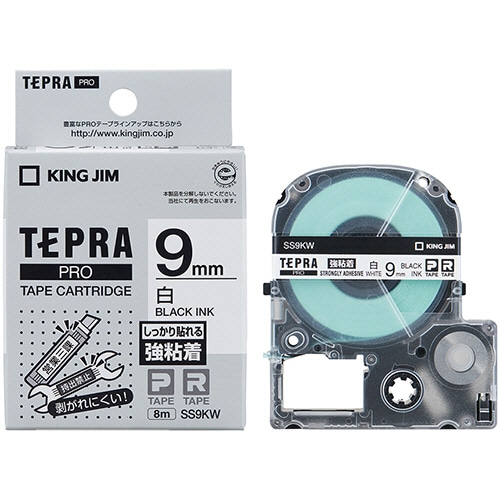 キングジム テプラ PRO テープカートリッジ 強粘着 9mm 白/黒文字 SS9KW 1個
