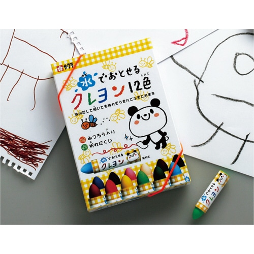 みつろう入の太めクレヨンは水で落とせる便利もの。
