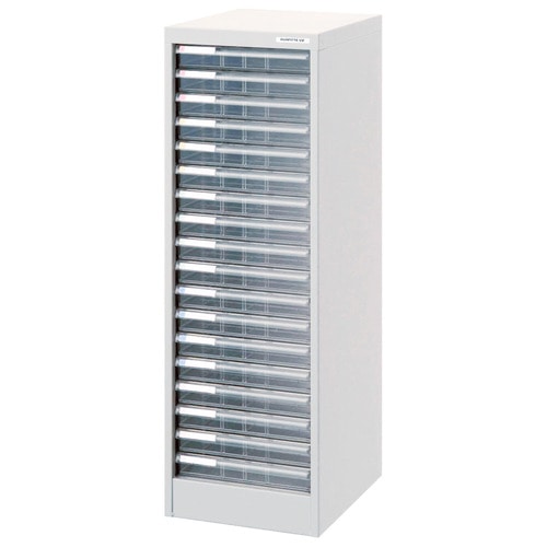 ●分類インデックスカード付で、大量書類もらくらく分類。浅型18段・ニューグレーのフロアケース。