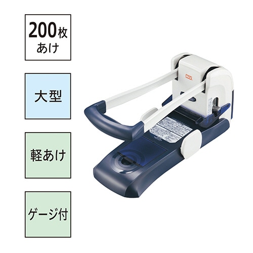 商品仕様 | ●穴あけ枚数/約200枚 ●穴数/2穴 ●穴間隔/80mm ●穴径/6mm ●穴奥行/12mm ●交換ロット刃/DP-200カエバ ●交換用刃受け/DPハウケ ●寸法/W142×D363×H180mm ●重量/2.62kg ●その他仕様/●仕様:ゲージ付 ●付属品:替刃2本、刃受け4枚 |